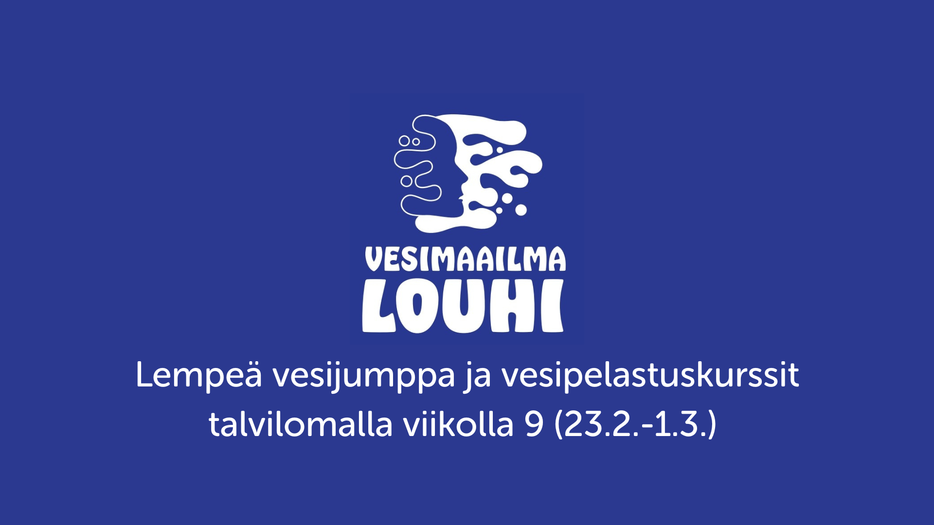 Lempeä vesijumppa keskiviikkoisin sekä lasten ja nuorten vesipelastuskurssit perjantaisin ovat talvilomatauolla viikolla 9, eli 23.2.-1.3.2026.